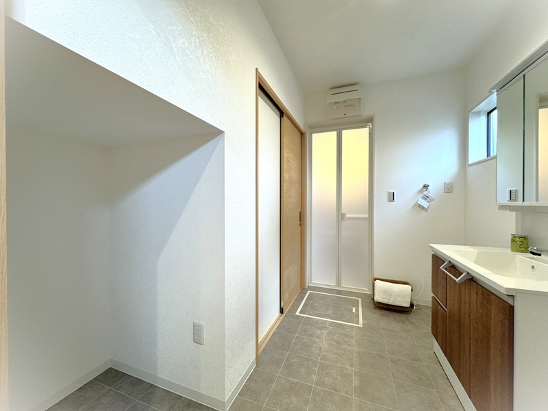 【ランドリールーム】弊社施工例 玄関ホールとキッチンに2WAYアクセスの洗面室。