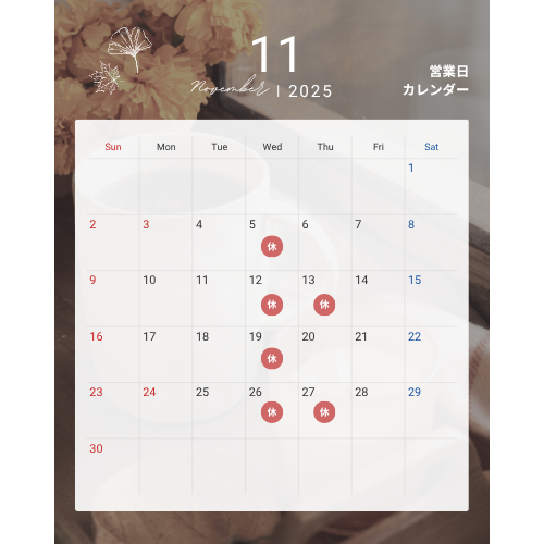営業所11月カレンダー出来たのでお知らせいたします。