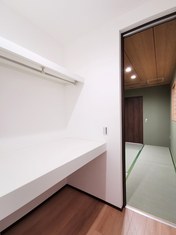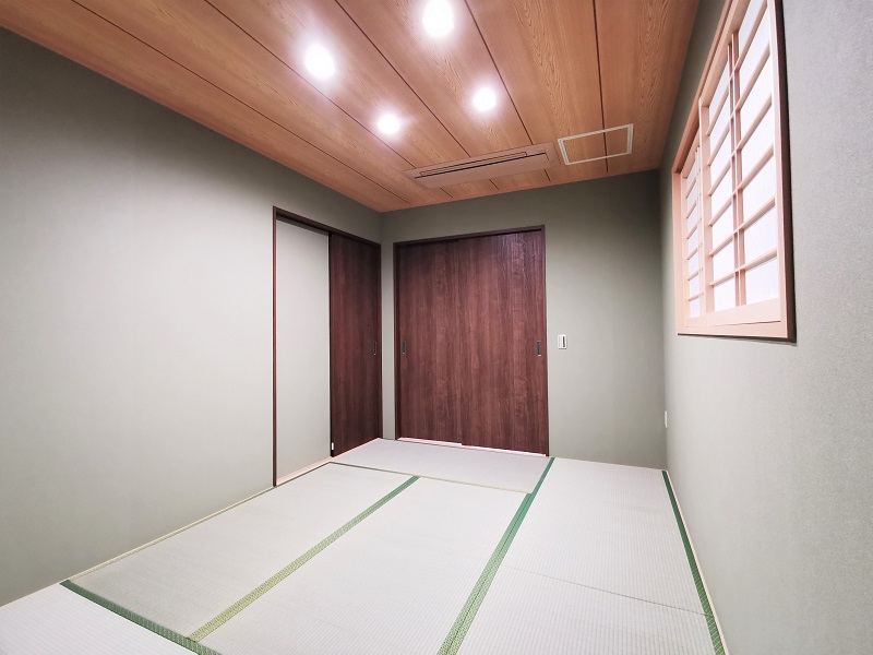 外装は、白色を基調とした中に綺麗な緑青(ロクショウ)色や優しい木色などが美しく調和しています。