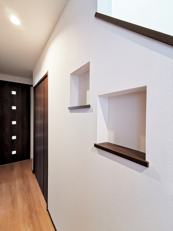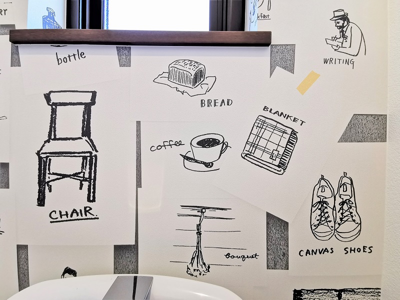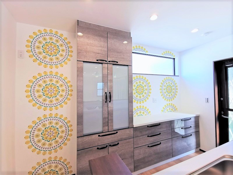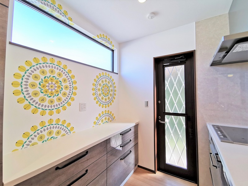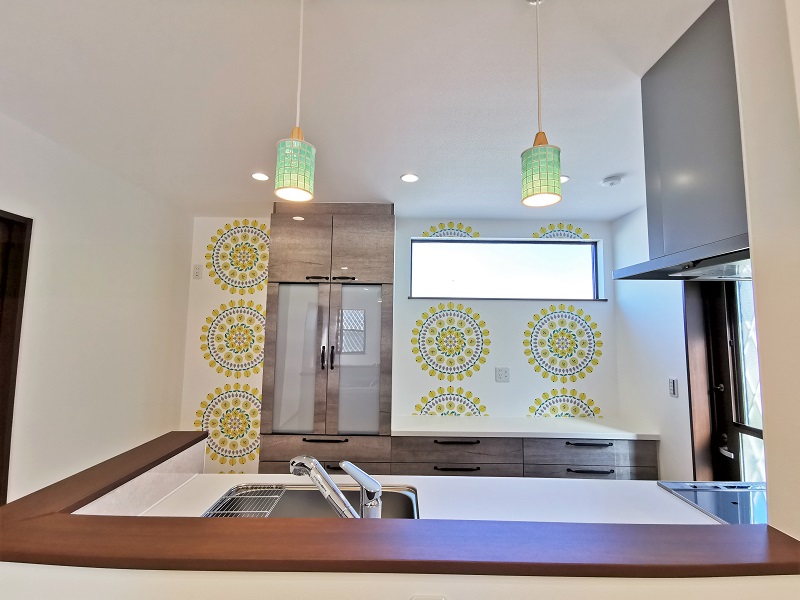 表札や内装壁紙など、可愛らしさや遊びゴコロを取り入れたお家。