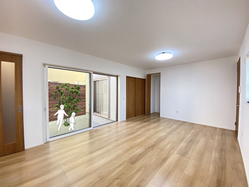キッチンからも中庭を見ることができるので小さなお子様も安心して遊べます。