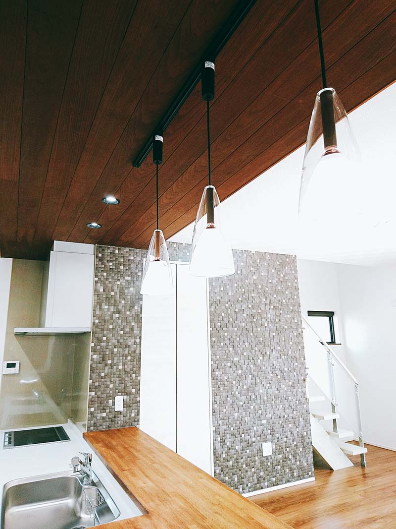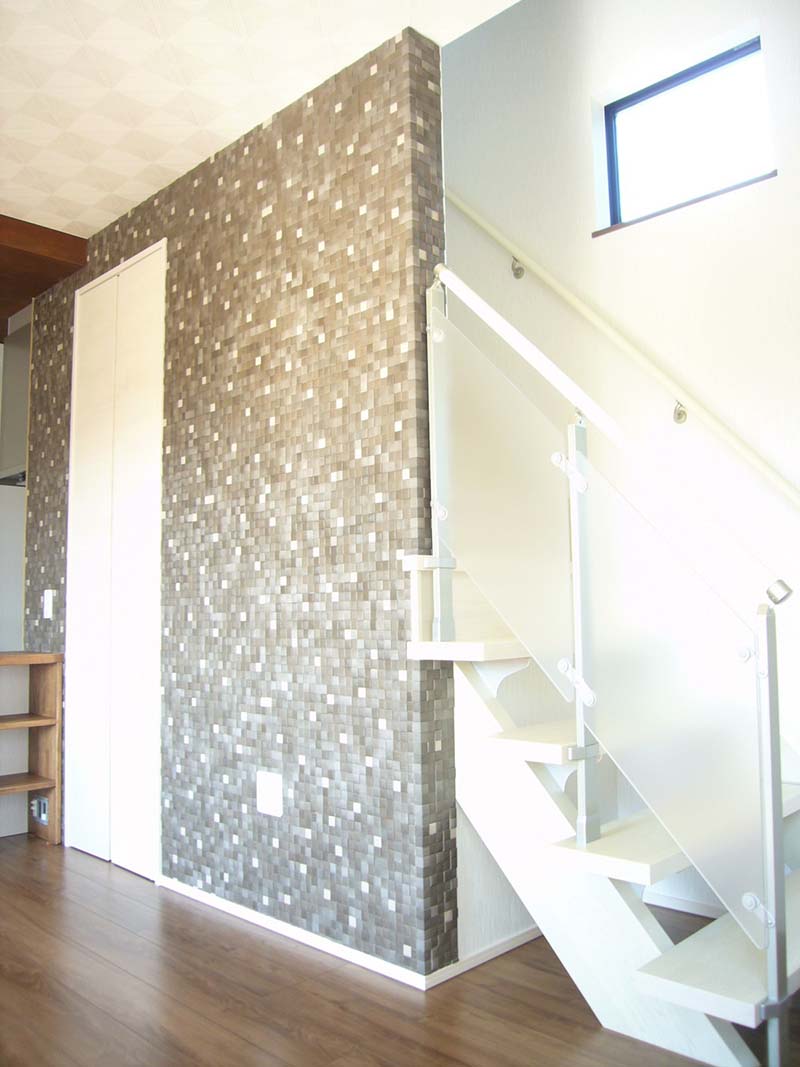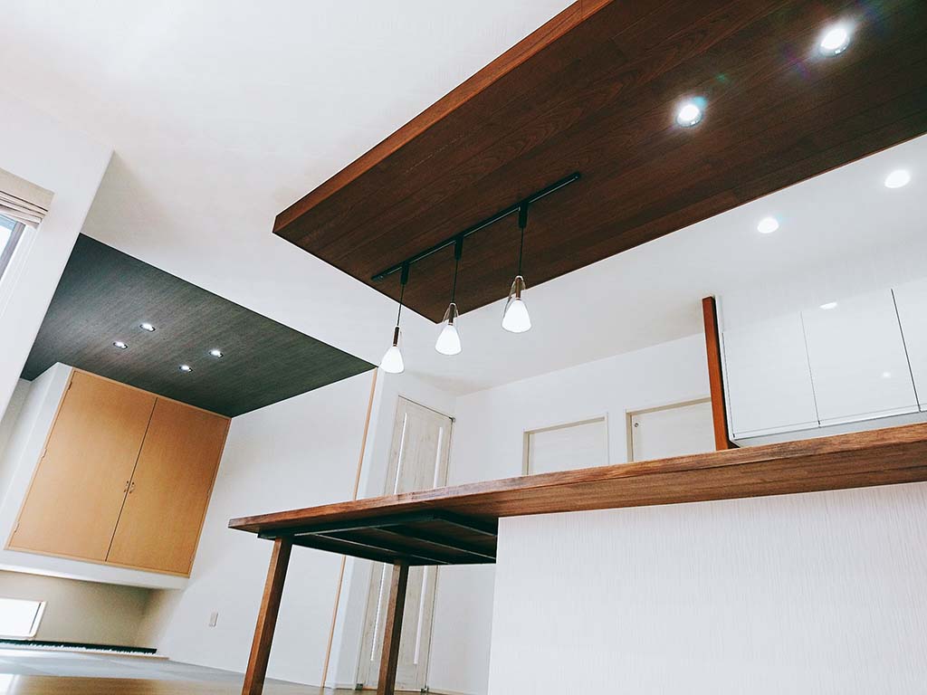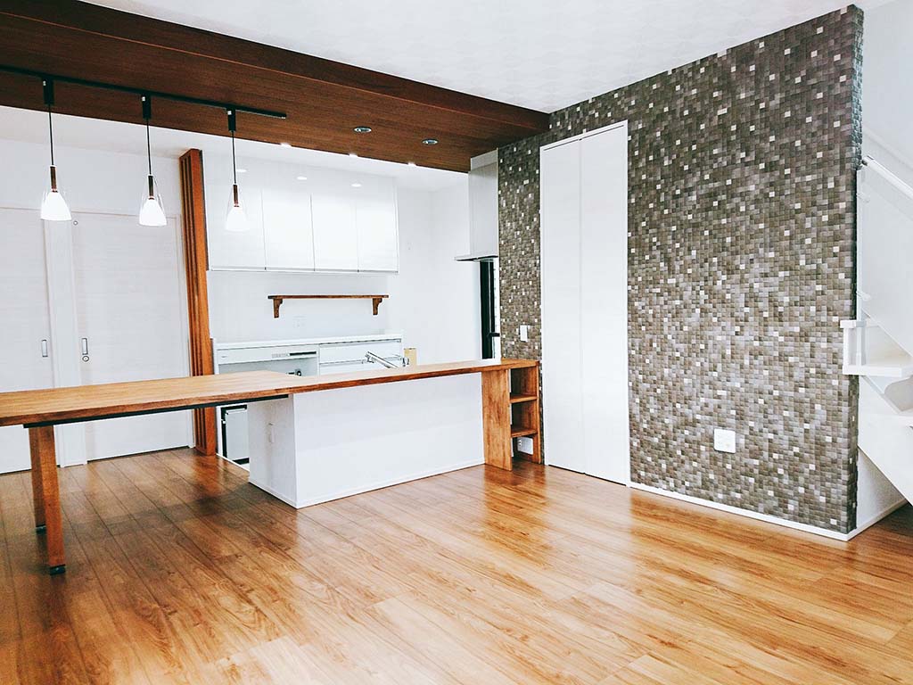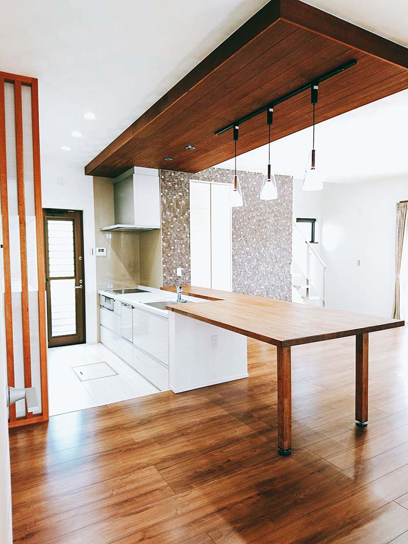 板貼り天井や造作キッチンカウンター、ウッドバルコニー等木の温もりを感じ、ホール・LDK・主寝室等各所にエコカラットタイルを配した全空間が輝く内装。