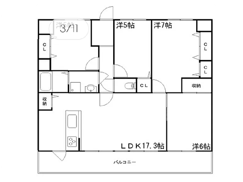 | 間取内容 | LDK17.3畳 洋室7畳 洋室6畳 洋室5畳 2室 | ||