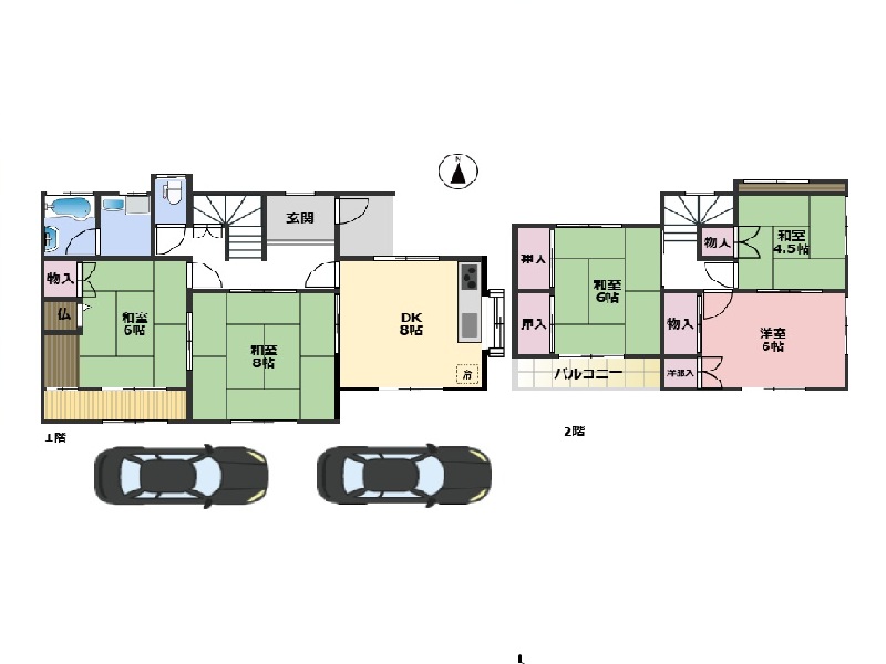 間取内容 DK8畳   和室8畳   和室6畳   洋室6畳 2階   和室6畳 2階   和室4.5畳 2階