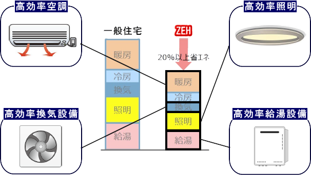 正味で75%省エネを達成したものを Nearly ZEH 、正味で100%省エネを達成したものを ZEH という。